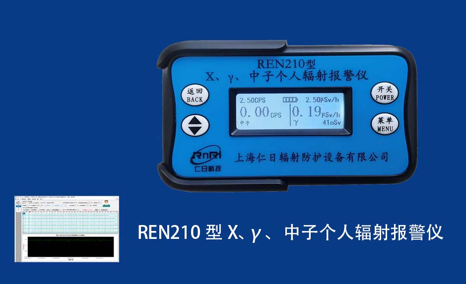 REN210型X、γ、中子個人輻射報(bào)警儀內(nèi)置SiPM和鋰玻璃晶體組成中子探測器儀器,采用反照率方式探測中子射線,同時(shí)也能探測X、γ射線。因此它可同事監(jiān)檢測X、γ、中子三種射線。能顯示工作場所的劑量當(dāng)量率和累積劑量,更換電池時(shí),日期及累積數(shù)據(jù)能永久保存。可選配RenRiPersonal個人劑量管理軟件,該軟件可存儲多個人的歷史數(shù)據(jù),能記錄日累積、月累積、年累積、輻照時(shí)長、計(jì)算平均劑量率、扣除或不扣除本底輻射,且以文字和圖譜的方式展現(xiàn)數(shù)據(jù)。廣泛應(yīng)用于環(huán)保、化工、水泥、煤礦、土木工程、石油、醫(yī)院、疾控、進(jìn)出口商檢、核電、加速器、機(jī)場、中子源庫和其他安檢、邊境控制海關(guān)檢測等領(lǐng)域中的工作人員進(jìn)行個人安全防護(hù)監(jiān)測及放射性提示。